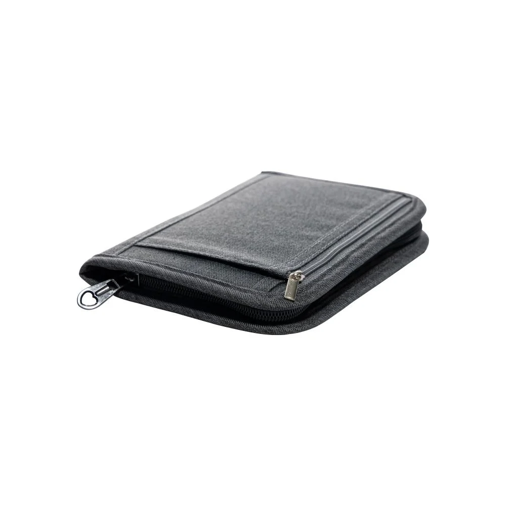 O porta documentos é equipado com múltiplos compartimentos, permitindo que você armazene não apenas seu passaporte, mas também cartões de crédito, bilhetes de viagem e outros documentos essenciais em um só lugar. A sua cor cinza neutra combina com qualquer estilo, tornando-o um item indispensável para a sua viagem.